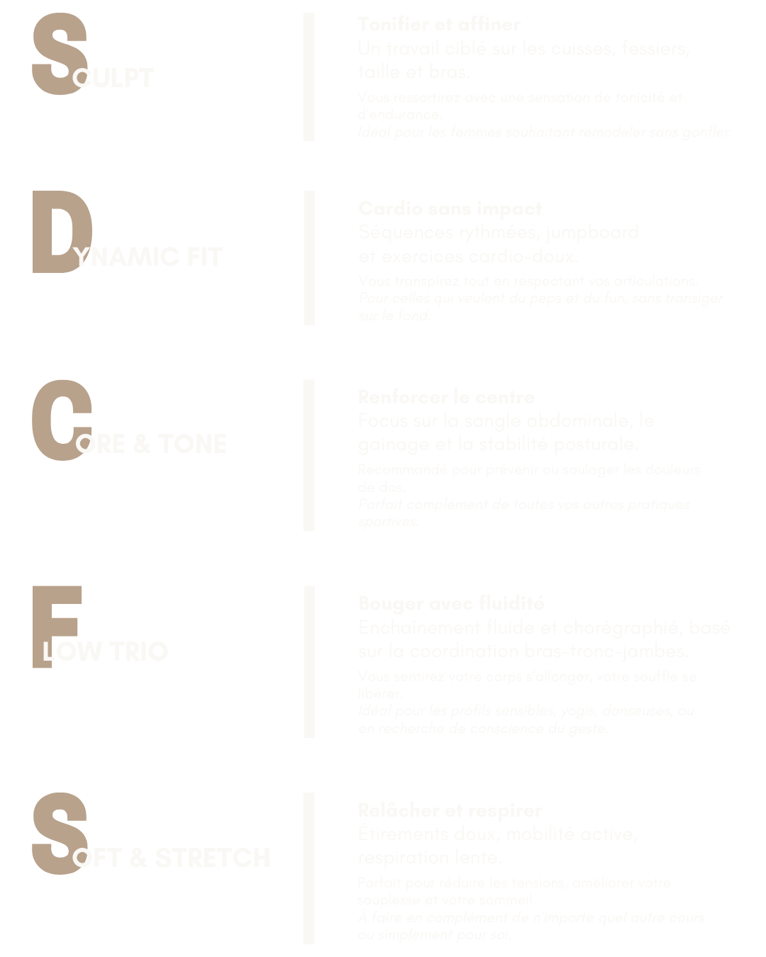 Dans une atmosphère apaisante, loin du rythme effréné du quotidien, nous vous accueillons pour (re)découvrir votre corps, développer votre force profonde, améliorer votre posture et retrouver l’équilibre entre énergie et sérénité.